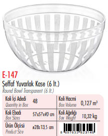 ERKOÇ YUVARLAK KASE 6 LT
