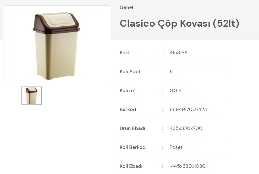 CLASICO ÇÖP KOV.6 (52lt) Naturel FANTASTİK
