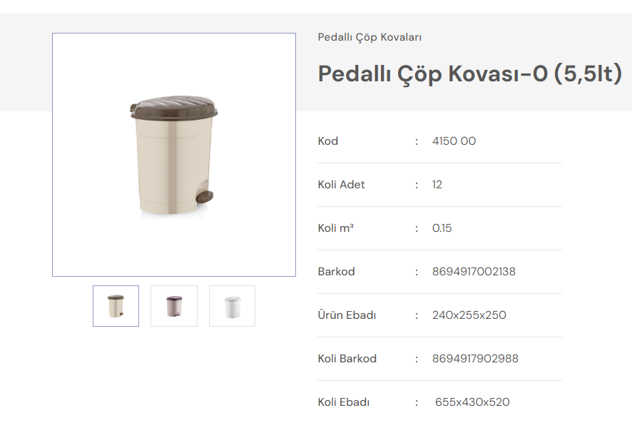 BURSEV PEDALLI ÇÖP KOVASI 50 Lt NATUREL