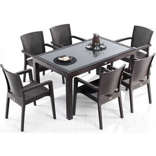 CAPİSSİ BAMBU MASA TK 90*150+6 KOLTUK KAHVE CAMLI
