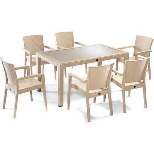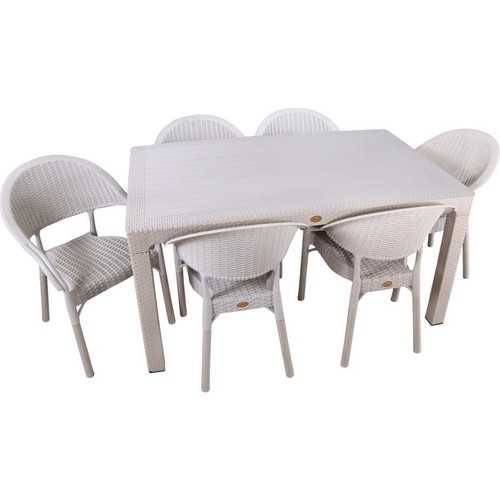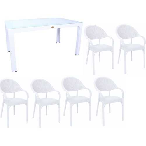 CAPİSSİ BAMBU MASA TK 90*150+6 KOLTUK BEYAZ CAMLI
