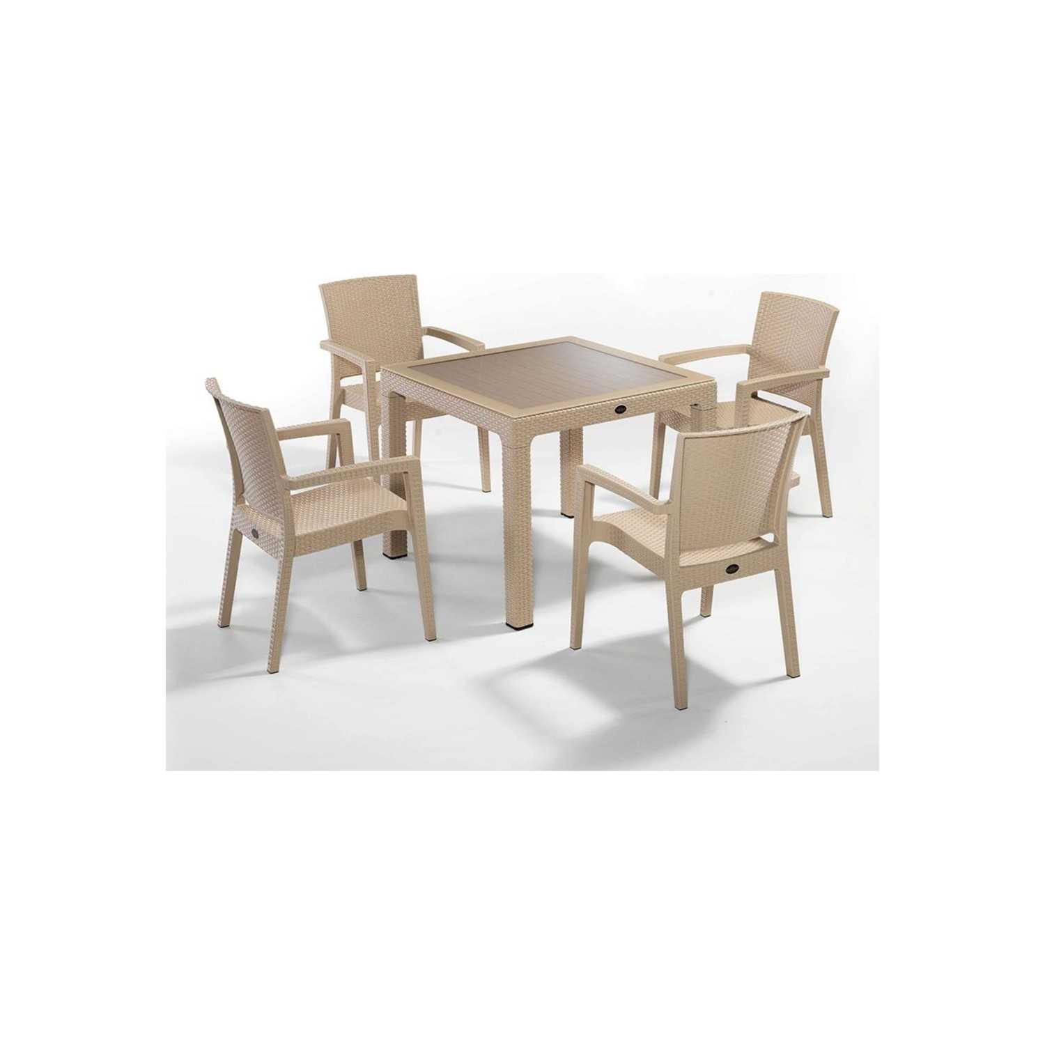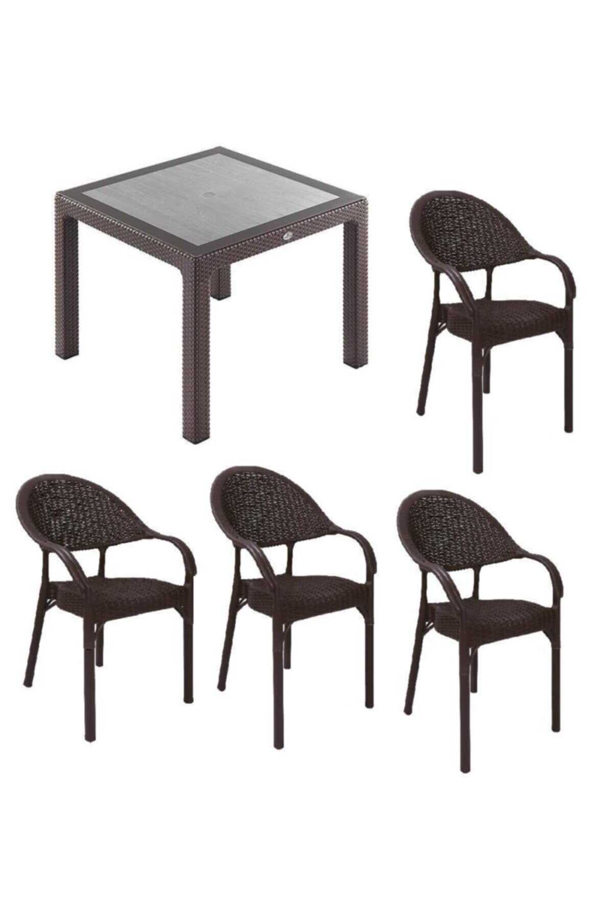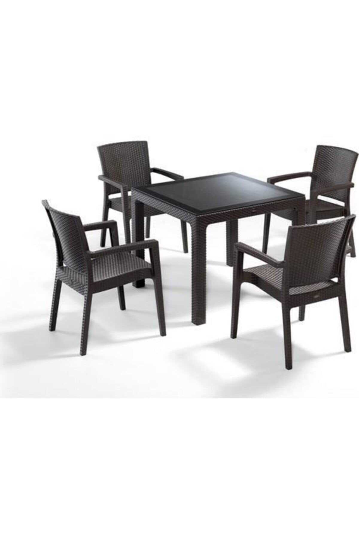 CAPİSSİ BAMBU MASA TK 90*90+4 KOLTUK KAHVE CAMLI