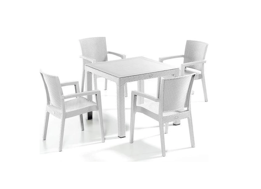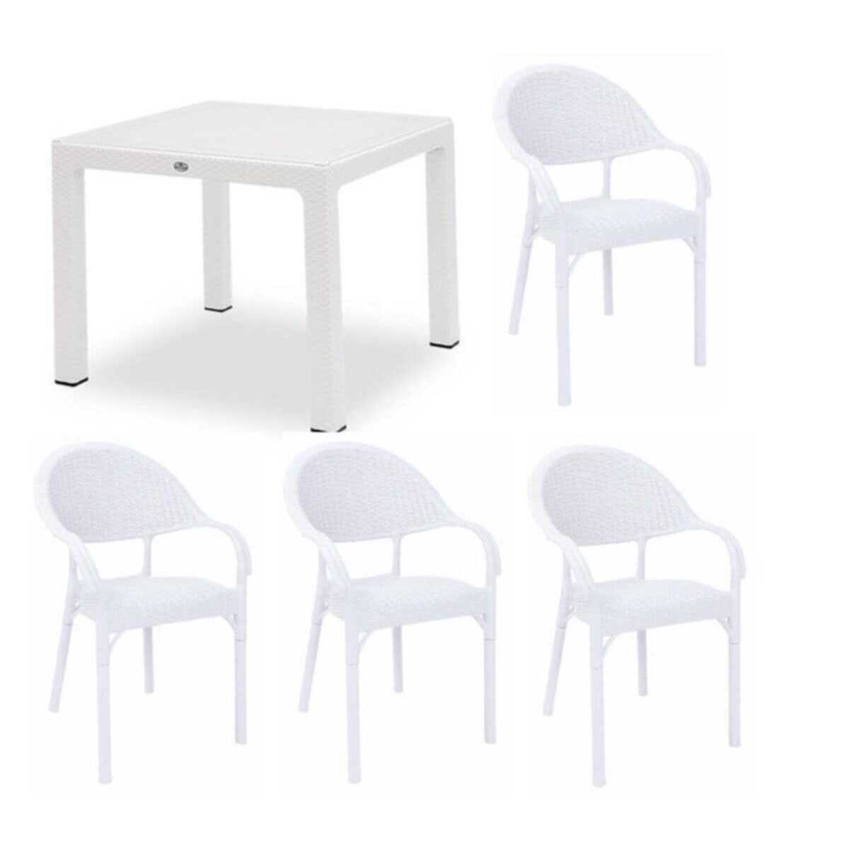 CAPİSSİ BAMBU MASA TK 90*90+4 KOLTUK BEYAZ CAMLI