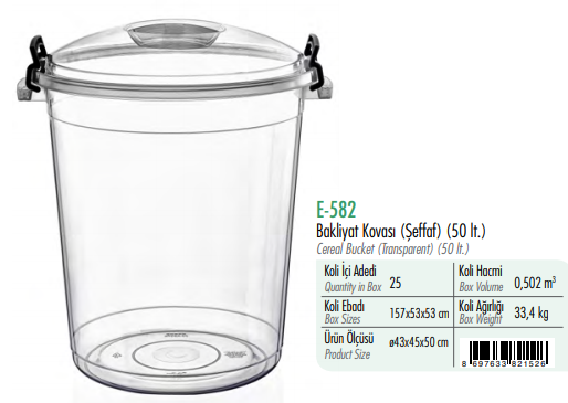 Bakliyat Kovası 50 Litre (Şeffaf) ERKOÇ