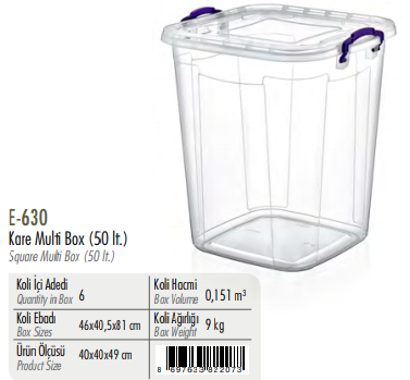 50 LT Kare Multi Box ( Şeffaf ) ERKOÇ*6