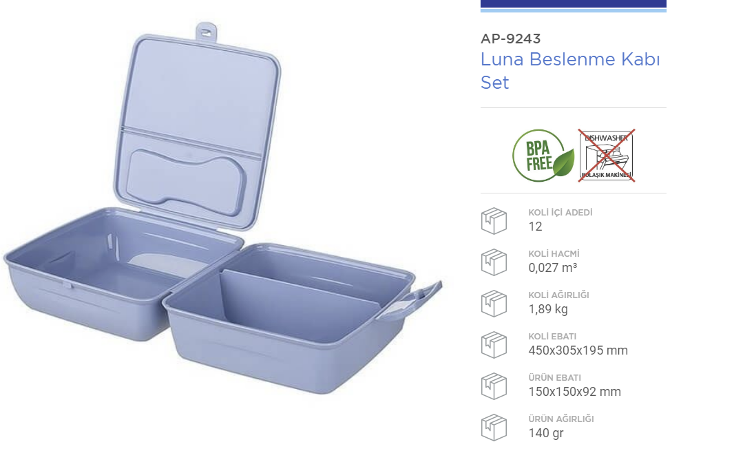 LUNCH 2Lİ RENKLİ BESLENME KABI*24