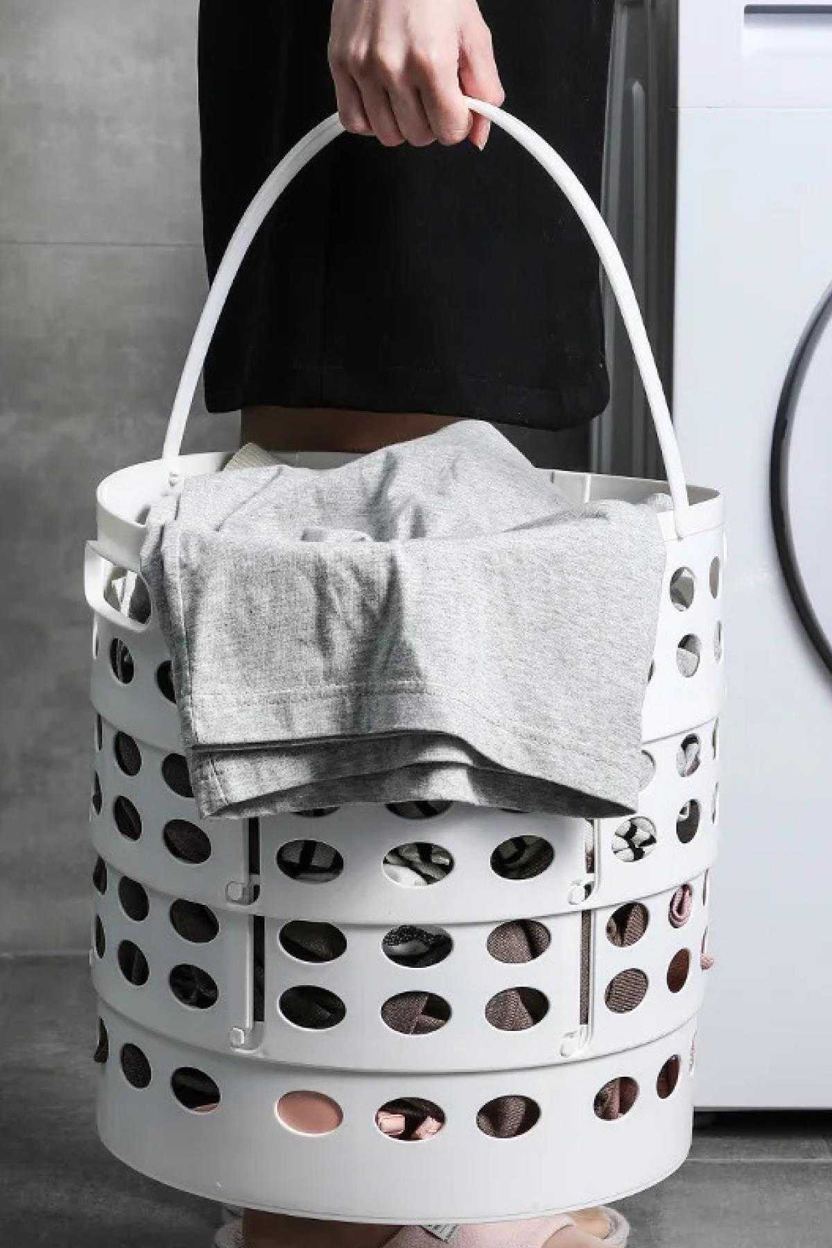 PERİLLA TELESKOPİK ÇAMAŞIR SEPETİ SOĞUK GRİ-BEYAZ