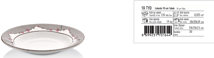 ÖZKALE 19 CM YEMEK TABAK DESENLİ T YD