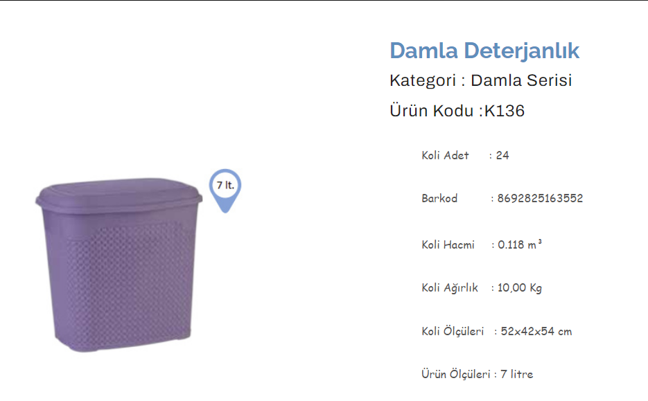 ÖRGÜ DESENLİ DETERJANLIK 10 L. 285*210 ÜÇSAN