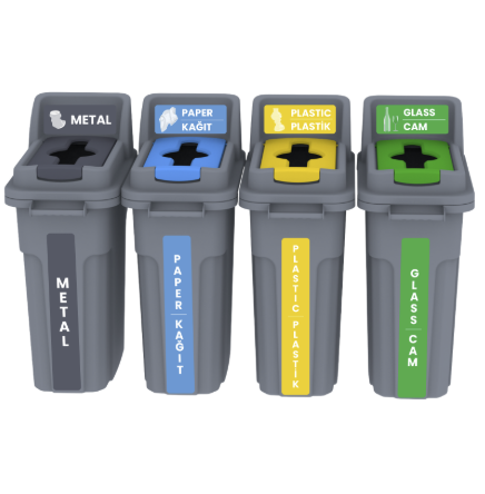 GERİ DÖNÜŞÜM KOVASI KİLİTLİKAPAKLI 4 LÜ SET 70 LT