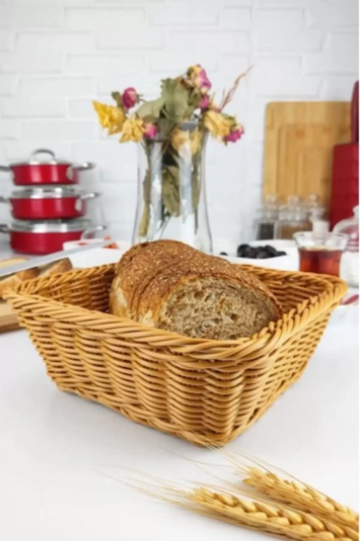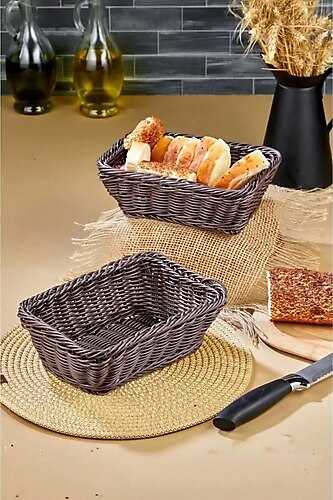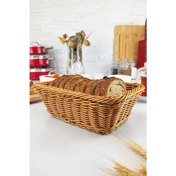 KAHVERENGİ DİKDÖRTGEN HASIR EKMEK SEPETİ