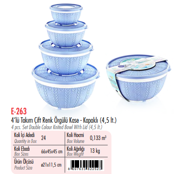 3 No Çift Renk Örgülü Kase ( Kapaklı ) ERKOÇ