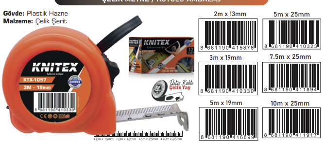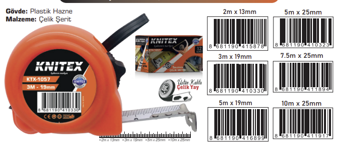 5 K-1KAUÇUKLU METRE 10M*25MM KTX-2887