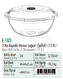 3 No Kapaklı Hamur Leğeni (Şeffaf ) ERKOÇ 15 LT*24