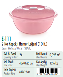 2 No Kapaklı Hamur Leğeni ERKOÇ 10 LT*24