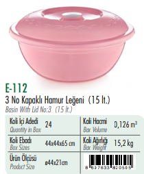 3 No Kapaklı Hamur Leğeni ERKOÇ 15 LT*24