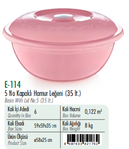 5 No Kapaklı Hamur Leğeni ERKOÇ 35 LT*6 LI