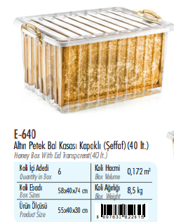 Altın Petek Bal Sandığı ( Şeffaf ) ERKOÇ 40 LT*6