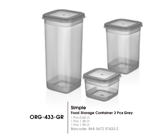 FOOD STORAGE CONTAINER (3 PCS SET) GRİ ORGANİZER