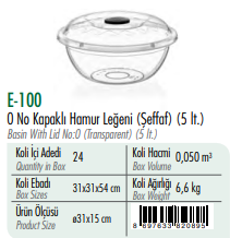 0 No Kapaklı Hamur Leğeni(Şeffaf ) ERKOÇ 5 LT *24