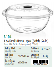 4 No Kapaklı Hamur Leğeni(Şeffaf ) ERKOÇ 26 LT*12