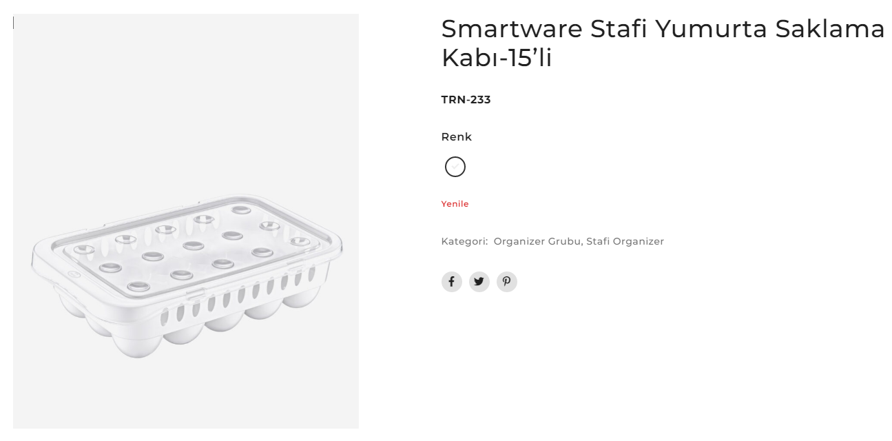 STAFİ YUMURTA SAKLAMA KABI 15 Lİ TURAN